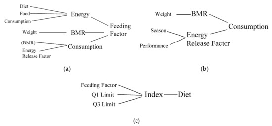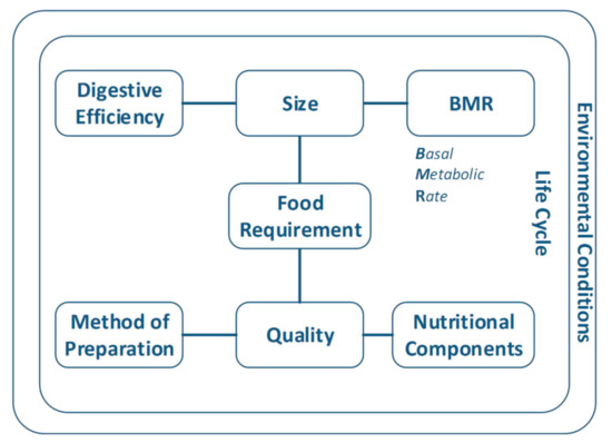 - BMR: This variable, which is dependent on weight, is a quantitative and continuous variable. The basal metabolic rate expresses the minimum number of calories that the raptor requires to survive (assuming it remains in a resting state), (see Equation (1)) [27].