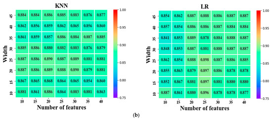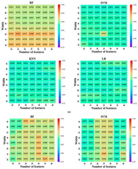 From the figure, we can conclude that the F1 score changes with different hypo-parameter sets. For the Random Forest algorithm, it outperforms the other three algorithms in both detection tasks. It achieved the highest F1 score when it used 20 as the width of time window and 15 as the number of features for the gas pedal. Similarly, it achieved the highest F1 score when it used 10 as the width of time window and 35 as the number of features for the brake pedal. SVM ranks second in terms of performance. There is no significant difference between the performances of KNN and LR. Table 4 shows the hypo-parameter groups of each classifier when they achieve the highest F1 score.