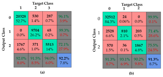 Confusion matrixes for test sets: (a) gas pedal, (b) brake pedal.