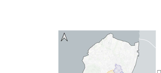 Lisbon, the capital city of Portugal, is located in the northern riverside of the Tagus river estuary and is one of the 18 municipalities that constitute the Lisbon Metropolitan Area, Portugal’s largest urban expanse, as presented in Figure 2. The city urbanisation is diverse, with an historical medieval centre, neighbourhoods developing along the main axes of circulation and more recent developments, following a process of rapid urbanisation and consequent urban sprawl [19]. The council has a continental area of 85.8 km2 and a submersed area of 14.2 km2, resulting in a total area of circa 100 km2.