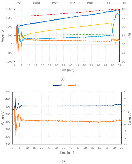 In this case, the main objective of the microgrid is always to guarantee the power balance, from a conservative and efficient use of the ESS, prioritizing the use of the microgrid’s resources, over the use of the electrical grid. For this, the battery operation is defined as a short-medium term ESS, while the H2 system will act as a long-term ESS.