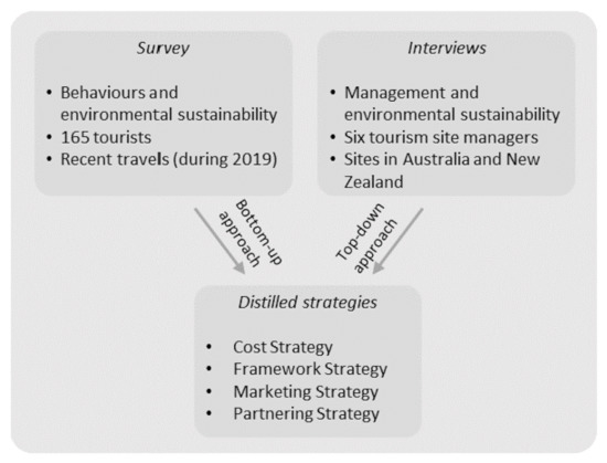 To inform the proposed strategies, both quantitative studies into the tourism consumer and qualitative studies with tourism industry experts have been conducted. Therefore, a combined methodology was employed in this paper. It constitutes a survey methodology to gather tourists’ behaviours towards environmental sustainability, and an interview methodology applied to tourism site managers to explore, through a top-down approach, managers’ drivers and barriers towards the adoption of sustainable operations.