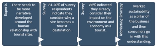 As introduced in Section 1, in the context of the survey, sustainability is used as a term to define leaving a site in the same or better condition after visiting, which protects or enhances the experience for future generations [47]. Therefore, the premise of this study is to explore ways to improve endurance and longevity of tourist sites. A high-level capture of the survey results can be found in Table 3.