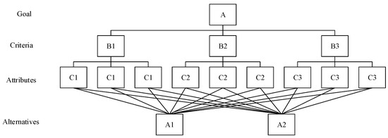 Hierarchical structure diagram of analytical hierarchy process [69].