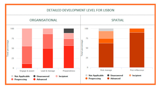 Overall of Lisbon resilience assessment for the Organizational dimension regarding the development level [33].