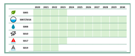 The implementation plan, presented in Figure 9, was defined articulating several official frameworks already approved and other commitments assumed, mainly following a political decision and prioritization, while depending on the financial capacity.
