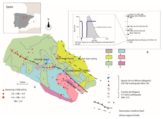 Sanz, E.; Menéndez Pidal, I.; Escavy, J.I.; Ojeda, J.S.d. Hydrogeological Changes along a Fault Zone Caused by Earthquakes in the Moncayo Massif (Iberian Chain, Spain). Sustainability 2020, 12, 9034. https://doi.org/10.3390/su12219034
