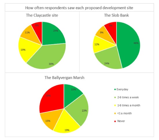 | Q3, 5, 7 Relating to how often people see the proposed development sites | Public | How often do you see the Claycastle site? | Every day, 2–6 times a week, 1–6 times a month, <1 a month, Never. |