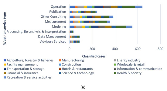 Weather services concern past, present, and future weather and climate information that is useful for decision-making and, thus, help a variety of industries and economic sectors [33]. In some studies, climate services are referred to separately from weather services [27,34,35]; however, in principle, climate services are considered part of weather services, as is applied in this study [36].