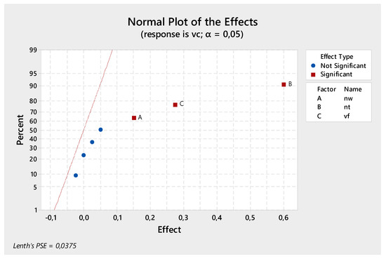 Normal plot of the standardised effect for the variable cost (vc) response.