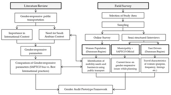 The study is cross-sectional and the survey data were collected from four different respondents, including a women population, employees of the SAPTCO and Dammam Municipality, and the taxi drivers. Among all four respondents, the data were collected using semi-structured questionnaires. Furthermore, the questionnaires were translated into Arabic to deal with the respondents’ language barriers, particularly for the women and municipal officials.