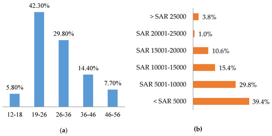 However, the number of respondents was found to be decreasing with an increasing age. Results also showed that approximately 40% of the respondents had a monthly income of less than 5000 Saudi Arabian Riyal (SAR).
