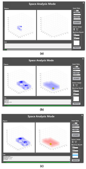 In this study, basic algorithms of numerical analysis and space analysis were pre-applied in MATLAB, and finally the C#-based space analysis system was constructed. This space analysis software is divided mainly into five areas: Input Data indicating the data setting value area for spatial analysis; Select Image indicating the execution results editing area; Matching Result indicating the execution results refresh setting area; Log showing the processing contents being performed; and Figure which is configured to select the data for spatial analysis and input the value while showing grid generation and spatial analysis numerically. Figure 5 below shows the space analysis software.