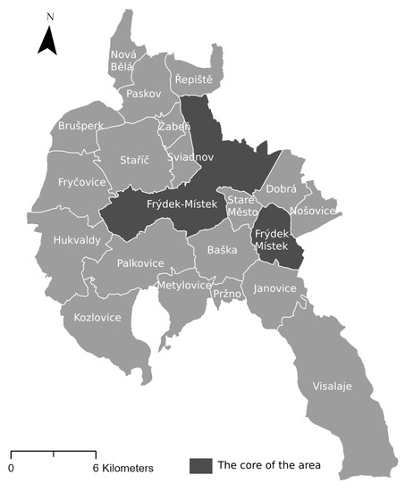 - Tonev, P.; Dvořák, Z.; Šašinka, P.; Kunc, J.; Chaloupková, M.; Šilhan, Z. Different approaches to defining metropolitan areas (Case study: Cities of Brno and Ostrava, Czech Republic). Geogr. Tech. 2017, 12, 108–120. [Google Scholar] [CrossRef]