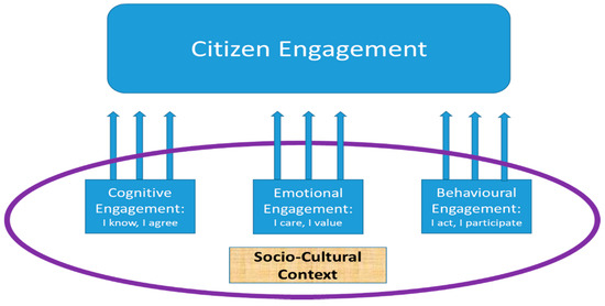Based on the theory of Educational Psychology, Dean et al. [10] propose a methodological framework developed in the socio-cultural context, which elaborates three pillars of the citizens’ commitment to their city’s water, as can be seen graphically in Figure 2: