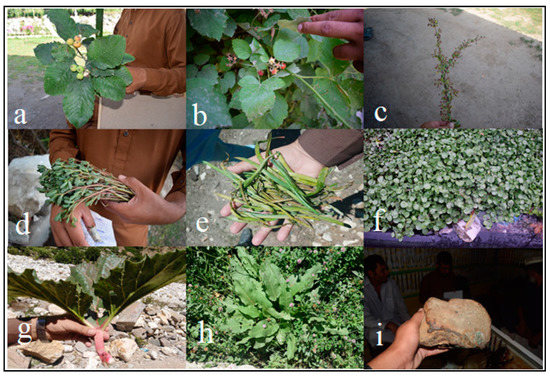 - Abbasi, A.M.; Khan, M.A.; Shah, M.H.; Shah, M.M.; Pervez, A.; Ahmad, M. Ethnobotanical appraisal and cultural values of medicinally important wild edible vegetables of Lesser Himalayas-Pakistan. J. Ethnobiol. Ethnomed. 2013, 9, 66. [Google Scholar] [CrossRef] [PubMed]