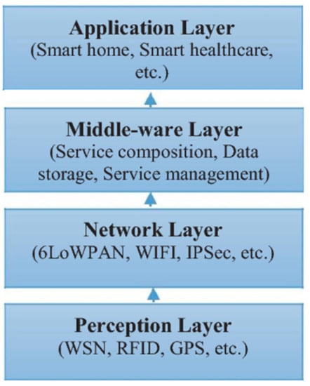 Example of internet-of-things (IoT) architecture based on four layers [20].