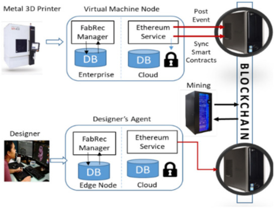 - Angrish, A.; Craver, B.; Hasan, M.; Starly, B. A Case Study for Blockchain in Manufacturing: “FabRec”: A Prototype for Peer-to-Peer Network of Manufacturing Nodes. Procedia Manuf. 2018, 26, 1180–1192. [Google Scholar] [CrossRef]