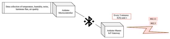 As stated before, the main principle of communication inside an IoT system implies that each collector node must “speak” the same language. In IoT, this is a big issue since there is a deluge of devices, each with its own language that does not follow the standards [44]. However, this compatibility problem is solved through a middleware [37,45,46] (i.e., a software that provides interoperability between incompatible devices and applications). In the literature, IoT middleware solutions are sometimes referred to as IoT platforms or IoT middleware platforms because generally, the middleware is a platform. However, as it is proven in this project, other middleware tools exist, such as building information modeling (BIM) or computational simulation software, which can act as a middleware [47,48,49].