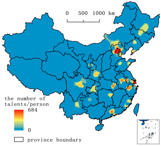 The overall spatial distribution of overseas high-level young returned talents in China (2011–2016).