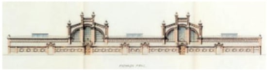 All the buildings were grouped in five sectors: production, management and administration, livestock market, slaughterhouse, and sanitation section, following a pattern of isolated pavilions separated by streets and presided over by the administration building (known as the Casa del Reloj) as the main axis of the ensemble. The complex is characterized by constructive utilitarianism, but without renouncing the almost handcrafted beauty provided using traditional and indigenous materials such as bricks and tiles. Furthermore, the combination of all this with some modern features such as rationality, simplicity, and functionality, heralded the architectural renovation of the 1920s (Figure 4).