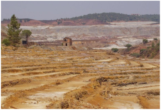 The Rio Tinto heritage, in the province of Huelva, represents the historical evolution of one of Europe’s most important mining sites. The subsoil has been mined non-stop for more than 5000 years, giving rise to a unique cultural landscape and a profoundly transformation of the natural environment. Mining operations peaked from 1873 onwards, when a British consortium bought the mines and introduced large-scale mining. The result was the emergence of open-cast mines, piles of tailings in large slag heaps, workshops, chimneys, planned workers’ quarters, residential areas for British managers, mining railways, etc. In 1954, the mines were bought back by the Spanish state, and then closed in 2001 as they had become unprofitable (Figure 7).