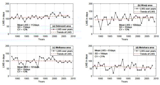 - The LWS during the Kiremt season was adequate for supporting the growth of selected crops in the mountainous and valley landscapes of Debrezeit, Wonji, and Melkassa, but not Metehara.