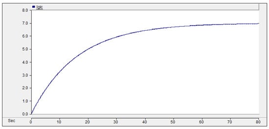 Figure 2 shows the graph of GIC according to Equation (1) with current increasing as a function of time. The graph shows that the current increases from 0 A until 7 A with the peak value occurring at 60 s, beyond which the current becomes constant.