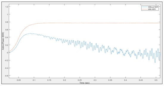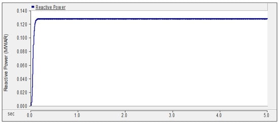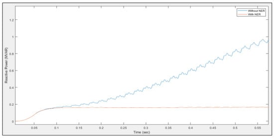 In terms of the stability, the active power increased and stabilized with time to 0.76 MW whilst the reactive power decreased to 0.18 MVar with time as shown in Figure 24 and Figure 25, respectively. Clearly, NER successfully reduced the magnitude of GIC entering the power transformer and thus maintained the voltage level of power transformer at steady state condition as shown in Table 6.