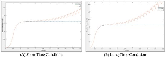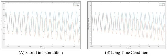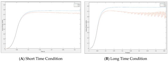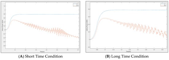 Meanwhile in Figure 19, results indicate that the value of the active power decreases to 0.15 MW at 0.45 s, which is an 80.77% decrement, while the value of the reactive power increases to 0.7 MVar at 0.5 s, which results in a 77.14% increment from the steady state condition for the short time condition. As for the long time condition, the active power decreases to 0.01 MW which gives a 98.72% decrement at 0.45 s.