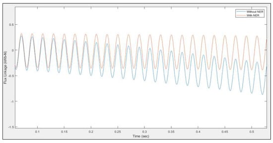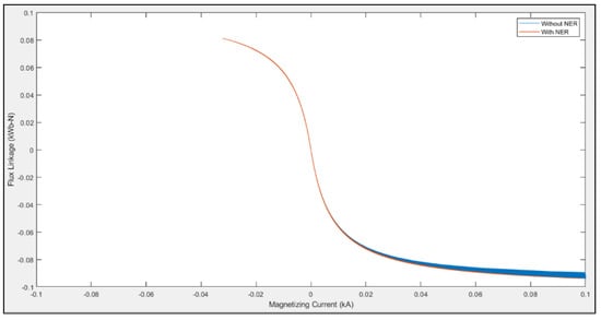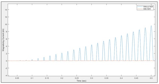 Considering the worst case scenario simulated for this case, the use of NER was able to lower and correct the flux linkage and the magnetizing current obtained, as opposed to the one without NER.