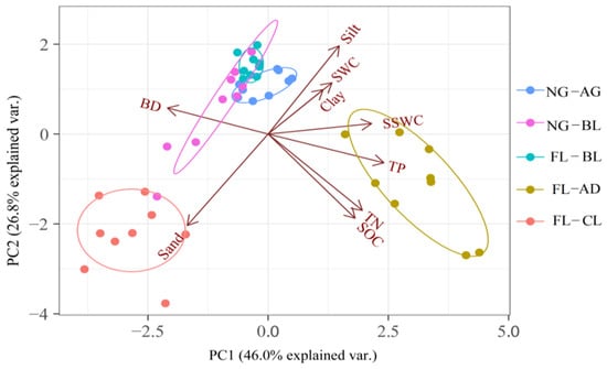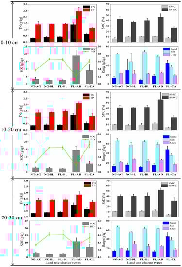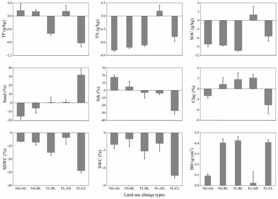 3.2. Soil Properties under Different Land Use Change Types