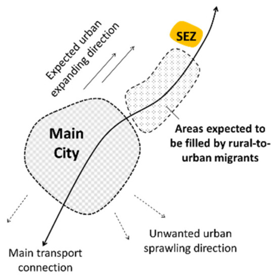 The second reason is that most SEZs—as new urban spaces—are located at the peri-urban areas where urban and rural, state-owned, and customary/private land are often mixed. The conversion of land from rural to urban use, from customary/private to national, or just from one owner to another, which usually involves complex and diverse land tenure, redefines the people-land relationship and relations of production and is thus full of uncertainty and disputes [31,32]. The government thus has the responsibility enabled by the public authority to coordinate those potential contradictions.