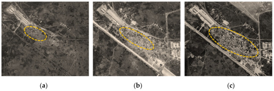 Increasing presence of ‘squatters’ within the Chambishi MFEZ: (a) 2006 (No Chambishi MFEZ); (b) 2012; (c) 2018.