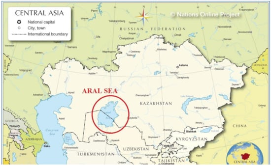 - Nations Online Project. Map of Aral Sea Basin in Central Asia. Available online: https://www.nationsonline.org/oneworld/asia.htm (accessed on 30 October 2020).