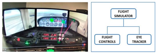 The experimental set up of a doctoral research work (at Leeds Beckett University) on Gaze pattern recognition to interpret vision cognitive behavior of pilots during in-flight startle was used as the IoT Eye Tracking system [88]. Figure 3 illustrates the set-up which consists of a Flight Simulator, Flight controls and an Eye tracker device.