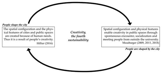 - Hillier, B. The fourth sustainability, creativity: Statistical associations and credible mechanisms. In Complexity, Cognition, Urban Planning and Design; Springer: Cham, Switzerland, 2016; pp. 75–92. [Google Scholar] [CrossRef]