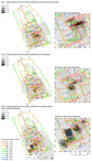 4.2. Superimposing People’s Perceptions on Space Syntax Results