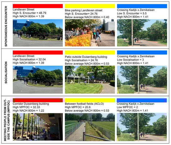 | Indicate on the map the public space(s) that provide(s) possibilities of meeting people from outside the campus (MPFOC) | Campuses should be activity hubs that serve not only students and staff but the wider population of a town and region [98]. |