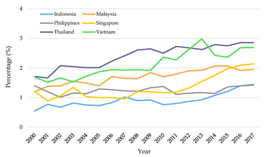 Figure 1 presents a comparison of healthcare spending in Southeast Asian countries in the period of 2000–2017. Comparing with other countries in this region, Indonesia’s health expenditure was reported to be relatively low, which might produce significant strain on the immunization system. The tight budget results in some obstacles to proper system financing and structuring, such as lack of funds to procure vaccines, unreliable vaccine availability, under-developed infrastructure (e.g., vaccine cold chain), and the possibility of subnational governments to use central government revenue for financing other health initiatives [8,19].