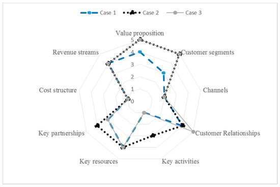 The business models of Case 1, Case 2, and Case 3 were analyzed using the business model assessment framework [39]. A comparative overview of the analyzed business models clearly showed the similarities and differences between firms, and was the basis for conclusions about the business model of small enterprises in the ICT sector (Figure 7).