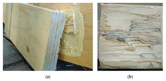 Glued joints with LVL splice. (a) Typical failure; (b) Detailed image.