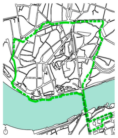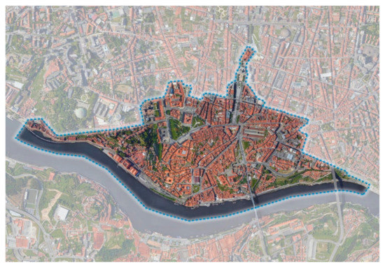 Porto is in the Northwest of Portugal and, today, is the second most important city in Portugal and the capital of the homonymous metropolitan area. The World Heritage Site is the oldest area of the cities of Porto and Vila Nova de Gaia, classified as a Cultural Heritage of Humanity since 1996 (Figure 4). The urban fabric is the result of a process of about three thousand years, dating back to the Roman, Medieval, and Almada periods (18th century) (Figure 5) [22].