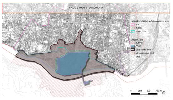 In these cities, the methodology for the analysis of historical fabrics described in Section 2.1 was highly implemented; thus, it is of interest to observe how the same approach to heritage was adopted in different geographic areas. It is interesting to compare these situations because the Portuguese case study is more advanced than the Italian one and can be used as a reference to understand the effects of land development at historical sites.