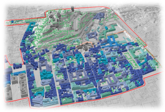 Close to these monuments are minor historical buildings with a low architectural value, and many of these are residential houses that are still in use. It is possible to talk about the archaeological urban park as a diffuse park because monuments are spread all over the examined area and they are linked by a network of streets (for the most part of Medieval origin), little squares, and piazzas [10]. The majority of the monuments and constrained valuable buildings are public properties; however, there are plenty of palaces and other minor historical assets that are private. Public intervention can enhance and renovate open spaces, can promote policies of urban redevelopment, and can develop guidelines but cannot force owners to begin redevelopment procedures.