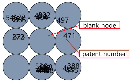 An analysis of the node-marked vacant technology shows that it is divided into nodes with and without keywords. Keywords are extracted if a patent is associated with the vacant technology corresponding to the node, but not if there is no relevant patent. The absence of related patents means that the technology corresponding to the node has not been studied. In other words, the related patent has not been issued, and the keyword cannot be extracted as there is no corresponding patent [54].