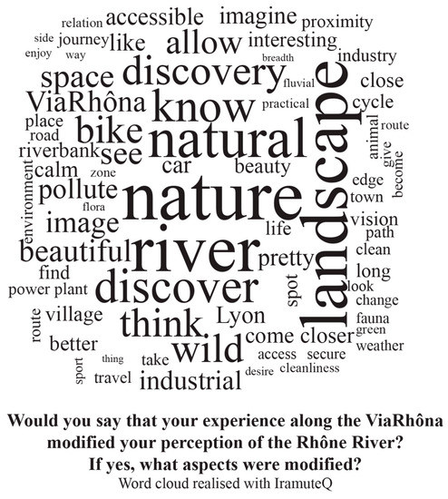 - The third part studied the impact of the cycle route on the relationship of the respondents with the river, in particular in terms of the image of and the values attributed to the river. To characterise those values, we used the typology devised by Brown and Raymond [24].
