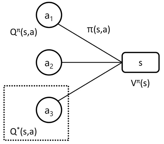 The optimal Q-value function Q*(s, a) is the maximum expected cumulative reward achievable from a given state–action pair. The concept of optimal Q-value function is shown in Figure 2.