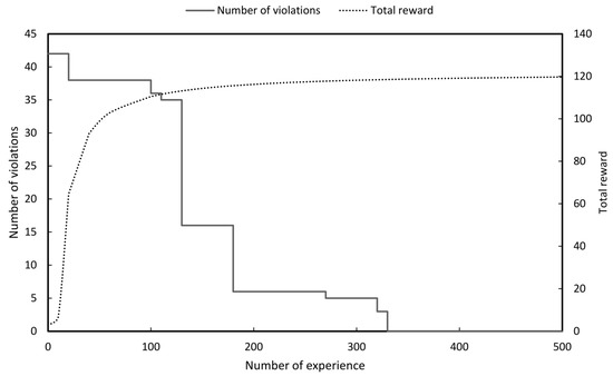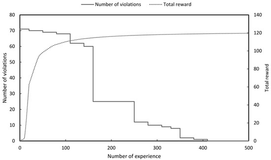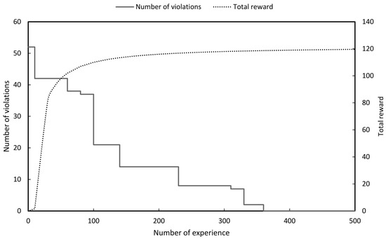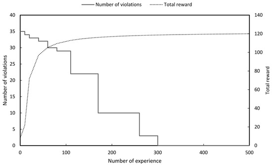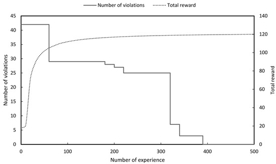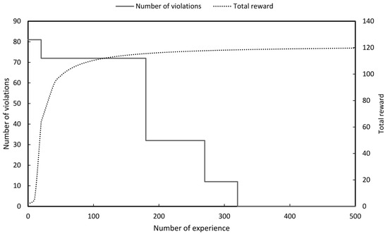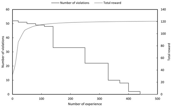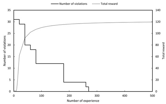 Figure 8 shows the degree of reward according to state change for each agent. In each agent, it is best to go in the direction of decreasing number of violations. Therefore, when an action is performed in the direction that decreases each number, the reward is provided as a positive value. If the number does not change after taking the action, the reward is given as zero. In addition, if one action instead increases the number of violations, the reward is provided as a negative number. By varying the degree of reward, the policy is configured so that the RL can take more effective actions.