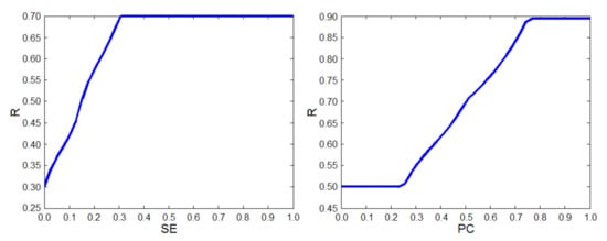 Charts of the relationship between the input variables (SE—left and PC—right) of the output variable R (own study).
